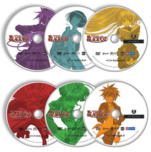 Product Description Sven is your run-of-the-mill sweeper (a.k.a. bounty hunter) down on his luck, haunted by the perpetual grumbling of his stomach and looking to make enough cash just to get by. When a damsel in distress enlists his aid, Sven crosses paths with the worst possible luck Black Cat (a.k.a. Train Heartnet). At odds now with the branded assassin, Sven seeks to save a young girl before the unlucky Number can carry out his mission.But fate has brought these three together for a reason, as Sven adopts two stray pupils The former Chronos eraser Train and the young bio-weapon Eve. As these newfound companions seek out a new way of life, the past proves unwilling to let them go free. Sought by both the Chronos Numbers and the Taoist revolutionary group risen against them, the Apostles of the Star, their happy ending will require more than just luck Amazon.com Black Cat (2005) brings together a trio of unlikely characters in an off-beat sci-fi comedy-adventure. Train Heartnet, The Black Cat, uses his superhuman speed and marksmanship as an assassin for the sinister cabal Chronos. Sven Vollfied, a perennially broke "Sweeper" or bounty hunter, talks his way into and out of adventures. This improbable duo collides when Sven tries to rescue Train's next target: Eve, a little girl who's been turned into a killing machine through illicit nanotechnology. A mixture of naiveté and murderous transformations, she's another example of the deadly moppets in recent anime. The story initially focuses on Train and his decision to live his own life, rather than continue as a deadly puppet for Chronos. But the subplots proliferate, climaxing in a baroque scheme that pits Sven, Train, Eve, and their friends against a power-hungry gang armed with nanotechnology and Tao superpowers. Director Shin Itagaki uses fast cutting, unusual colors, and interesting camera angles skillfully: he keeps the story moving, even when it doesn't make sense. Like Lost Universe, Black Cat shifts jarringly in tone from comic to heartwarming to dramatic. Voice actors Brandon Potter and Jason Liebrecht make Sven and Train an appropriately quarrelsome pair of buddies, but their voices sound too old for the characters, who look much younger than the designs inKentaro Yabuki's original manga. The 24 episodes in this set could have easily fit on four discs. Rated TV PG, suitable for ages 14 and older: violence, violence against women, brief nudity, alcohol and tobacco use) --Charles Solomon